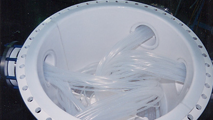 公司主要生產各類防腐大型儲罐、運輸罐車、反應罐、反應釜、塔器、換熱器、過濾器、攪拌器、管道和管件等。采用的工藝有板材緊襯,模壓燒結,熱滾涂、熱噴涂等,采用的材料有PTFE(聚四氟乙烯F4)、PFA、(可溶性四氟乙烯)、PVDF(聚偏氟乙烯F2)、FEP(四氟乙烯—六氟丙烯F46)、ETFE(乙烯四氟—乙烯F40)、ECTFE(三氟氯乙烯—乙烯F30)、PPS(聚苯硫醚)、PP(聚丙烯)、PO(聚烯烴)、PE(聚乙烯)等各種氟樹脂和工程塑料。能耐除熔融堿金屬以外一切強酸、強堿和有機溶劑,可廣泛用于化工、石油、化肥、電子、新能源、冶金、電力、制藥、海水淡化、食品等工業行業。